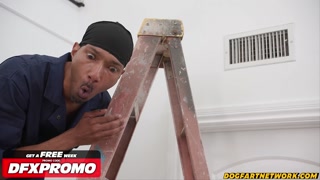 Big Tittied Trollop Spitroasted By MASSIVE Cocked Repairmen