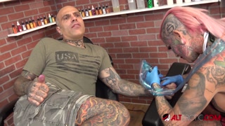 Big titty Evilyn Ink tattoos Sascha then gets fucked