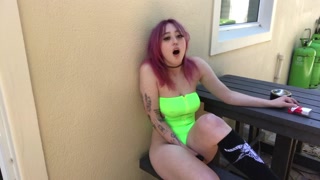 big titty goth gf vibrates, smokes & creams her soul out