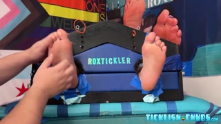 Blindfolded Evan Jons tickle tormented by dominant Matt
