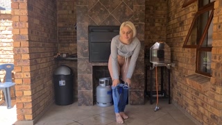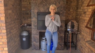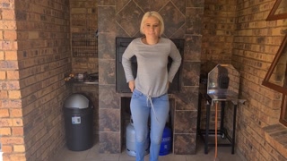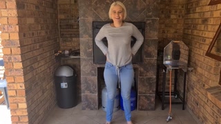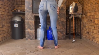 Blonde desperate jean pissing | Pants wetting
