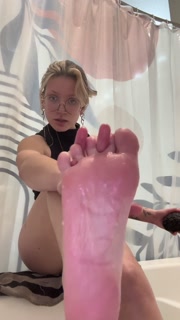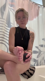 Blonde Goth Model BooogieRae gives her FEET and LEGS a sensual oil massage and exfoliation