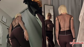 Blonde with Huge Tits Trying on Clothes in Mall. Milf Without Panties in Fitting Room