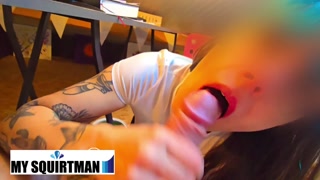 Blowjob and male squirt during a break at work with my colleague