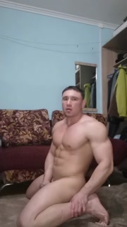 Bodybuilder cumming while riding big black dildo anal hard