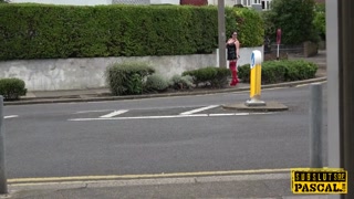 Bound chubby Britt toyed while fucked by dom