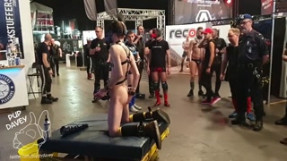 boy demonstrates big dildos at public event