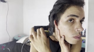 BOY WITH A HUGE COCK CUTS HIS HAIR AND ENDS UP FULL OF MILK