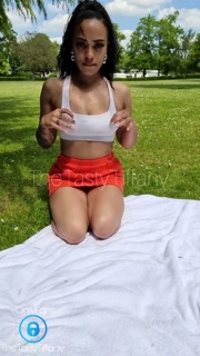 British mixed girl plays with her pussy in public park