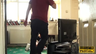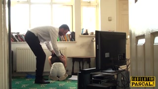 British squirting slut gaggs on maledom cock