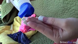 Britney Blue rubbing pussy and using Dildo