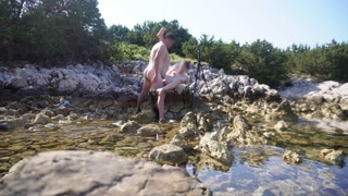 Brunette girlfriend wants to be fucked on a public beach and have her ass filled with cum