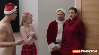 Busty MILF Penny Barber joins cutie Melody Marks for stepdad&stepbro xmas foursome