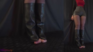 Careless Relaxing Bootjob and Crushing in Fold Over Boots - Cock Balls Crush Trample, Shoejob