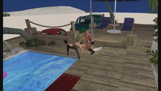 Catwoman in FFM Pee Sex by the Pool