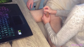 Caught Jerking Off - Gf helps me cum