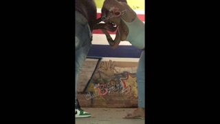 charliebhustle gets pounded on a night stroll , in Atlanta on bike Trail