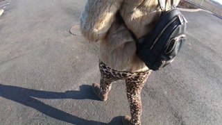 Cheating wife goes fur-coat shopping with her husband's friend. She will suck his cock out-door 221