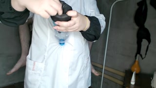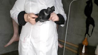 Chubby nurse instructing patient (handmade vagina for masturbation)