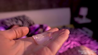 Chubby sluts gets choked by scarf with ice on pussy