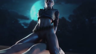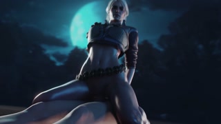 Ciri in cowgirl pose riding Big Dick . The Witcher