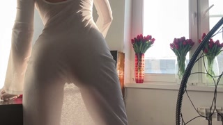 cleaning lady in perfect dress without lingerie