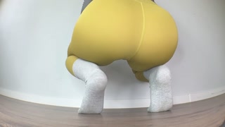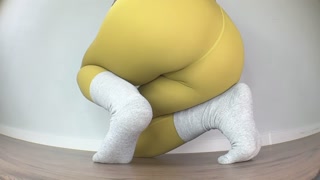 Close-Up Floor Peeing in Yoga Pants in Various Poses