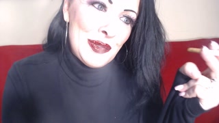 Closeup Smoking Red Glittered Lipstick