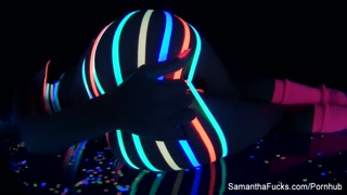 Colorful blacklight teasing with Samantha Saint