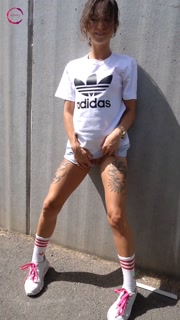 Crazy chick street pee