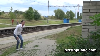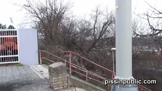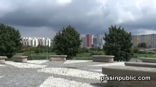 Crazy Czech girls are peeing in the middle of the city and get caught