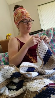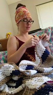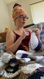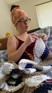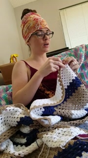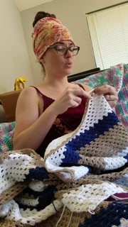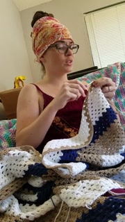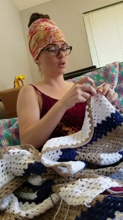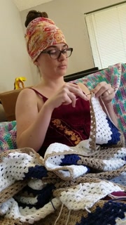 Creature crocheting and singing a tune