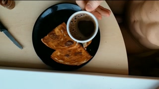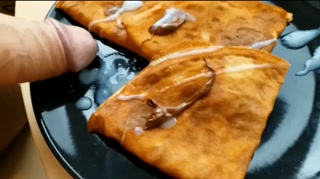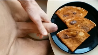 "Crepes with cream" - cuming on food