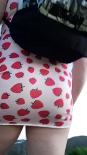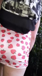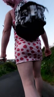 Crossdresser walks through the forest