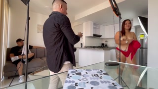 Cuckold session with my husband watching me fuck my photographer in the room