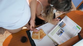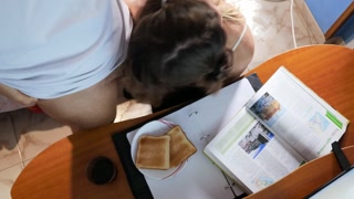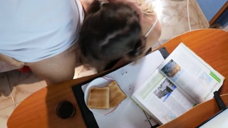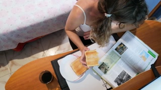 Cum breakfast-toast with milk while I am reading