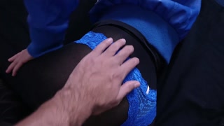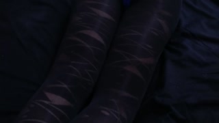Cum on sexy blue lace panties wearing black pantyhose