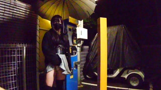 Cute crossdresser exposed outdoors and ejaculated while ashamed.