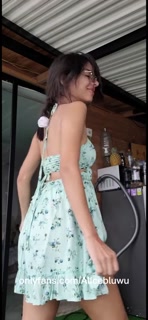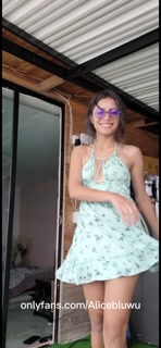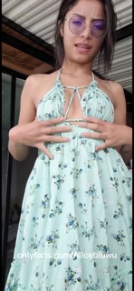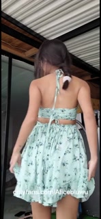 Cute Latina brunette in summer dress, peek up skirt