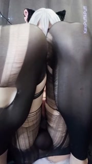 CUTE NEKO TRANS precum Wearing Buttplug Torn Tights and Cosplay SAGIRI IZUMI to CUMSHOT on Tablet