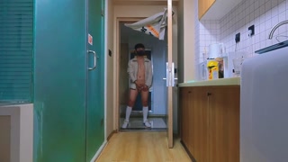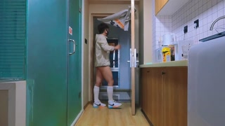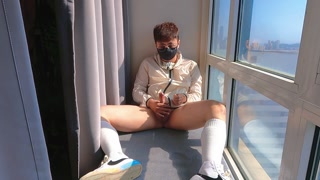 Cute teen masturbates and ejaculates in the hallway by the window