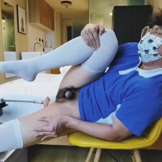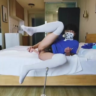 Cutie in school uniform and white stockings has sex with a machine