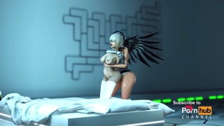 Cyber angel dickgirl fucks a sexy blonde in the space station