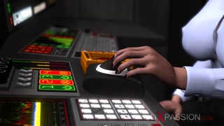 Cyberpunk sex in observation room. Hot futa fucks hard a busty sexy woman