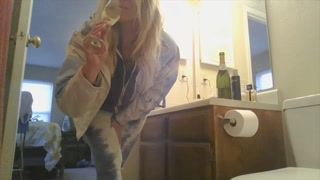 Daddy hates it when I leave a mess. I peed my pants his bathroom and mopped it with my blonde hair