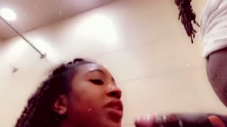 Daddy sneak in my bathroom and fuck my throat at the truck stop lol his slut me