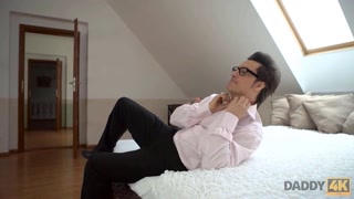 DADDY4K. Después de apreciar el apartamento, el hombre invita a la novia de su hijastro a la cama