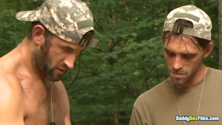 DaddysexFiles: Joe Parker and CJ Parker bang Conner Habibs ass when caught pissing on the camp