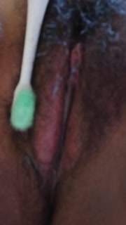 dark latina playing with vibrating tooth brush p 2