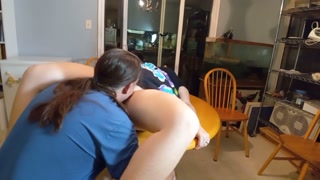 Date Night Meal! Eating her Pussy on the Table! Great Breast View during Doggystyle Creampie!